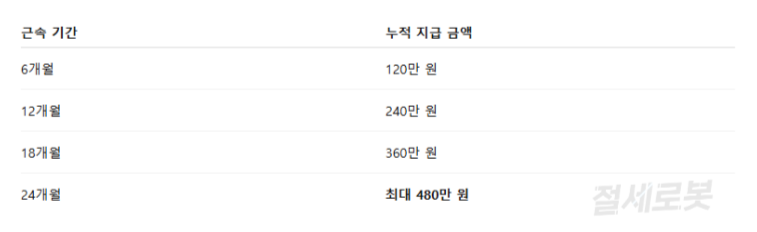 2년 근속 기준, 최대 480만 원을 지급받을 수 있어요!